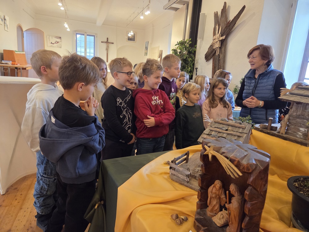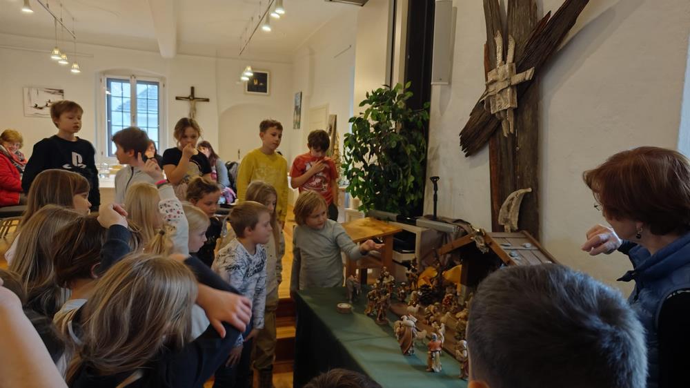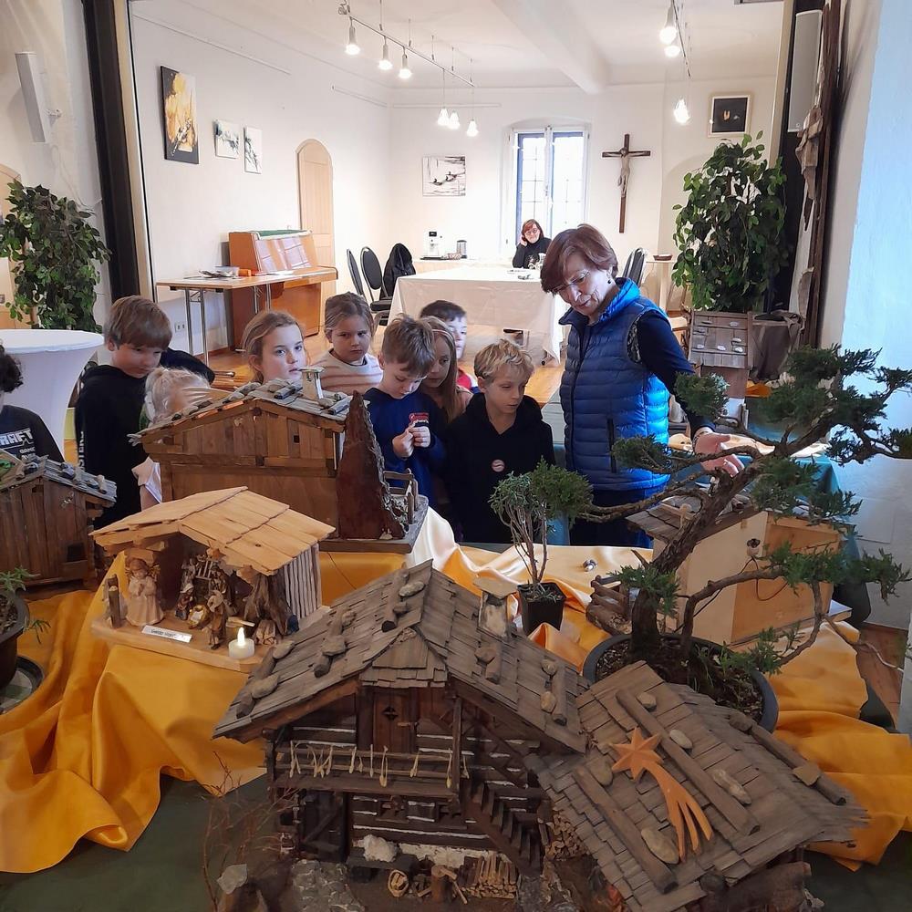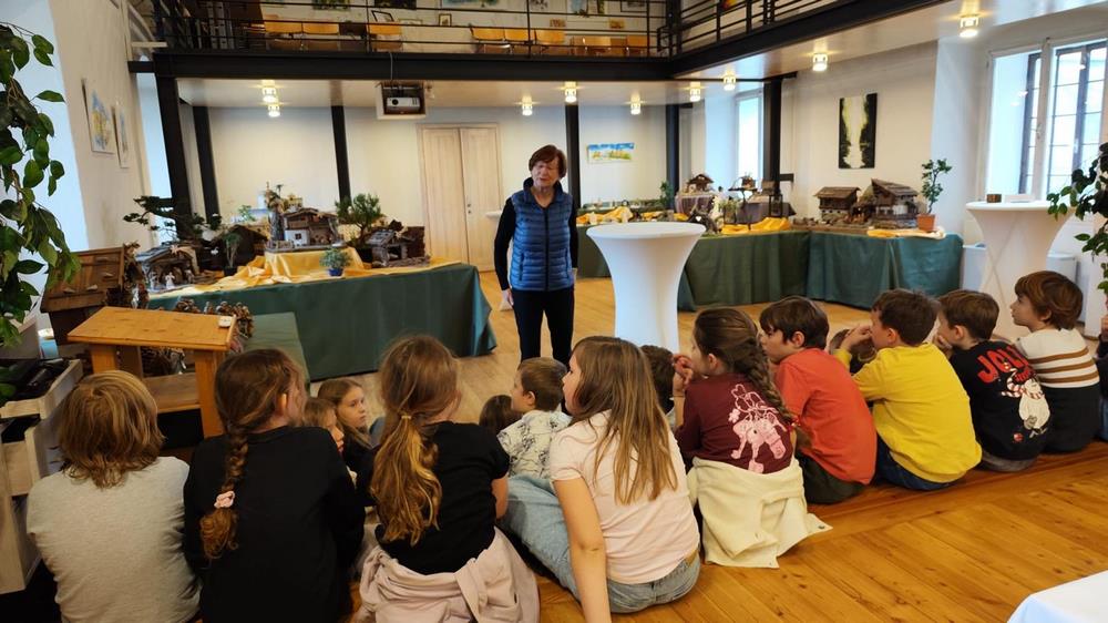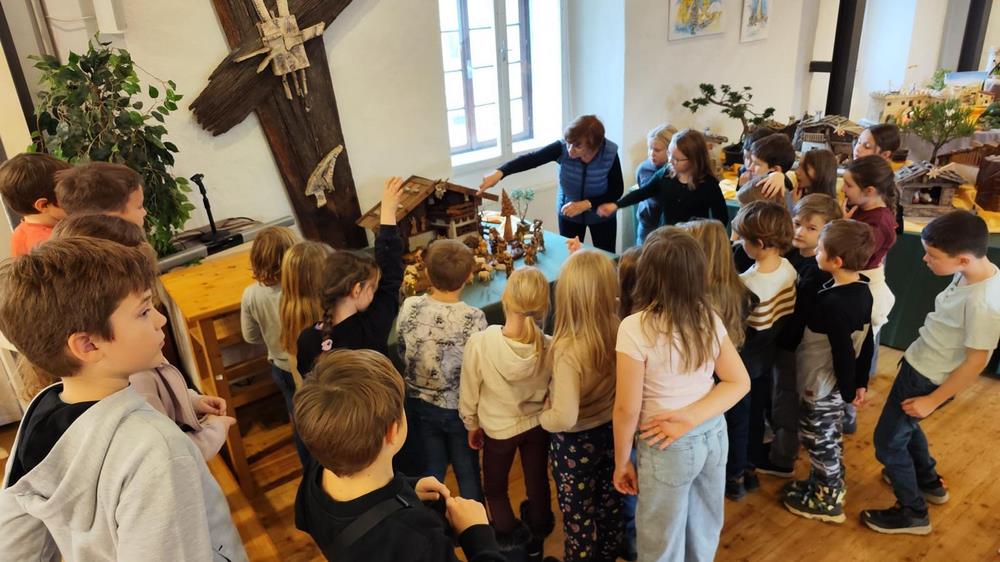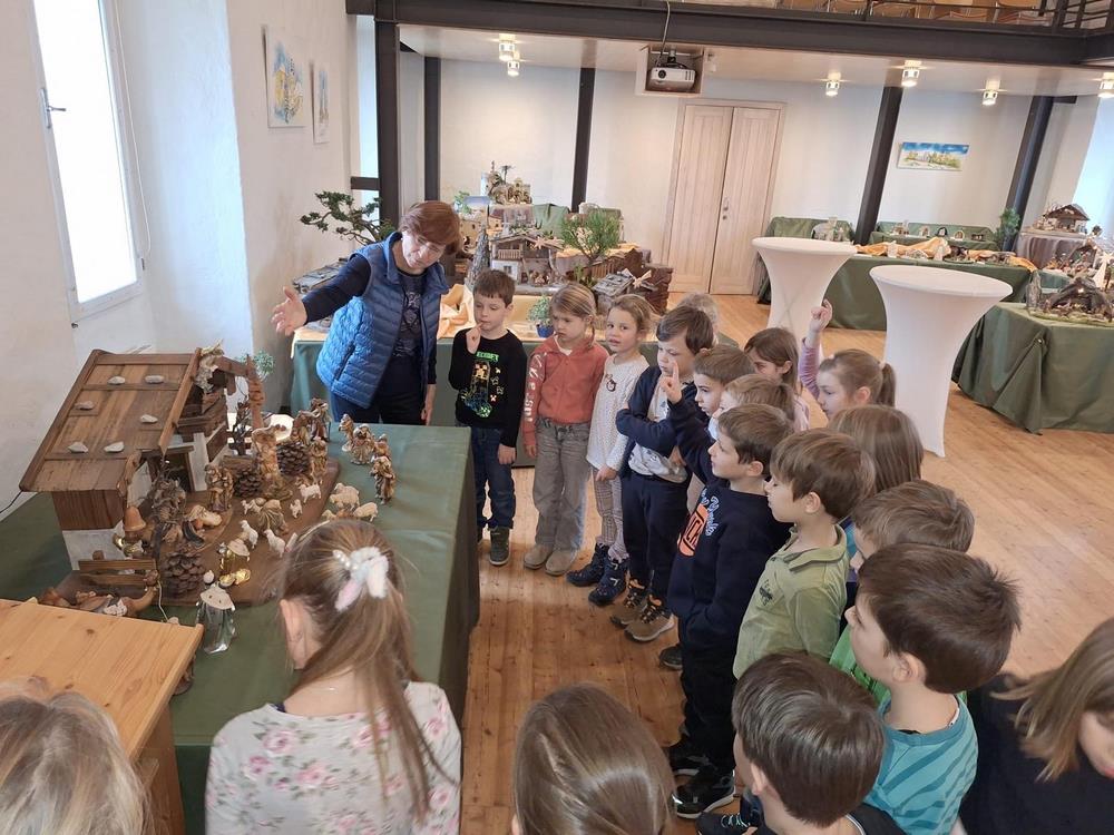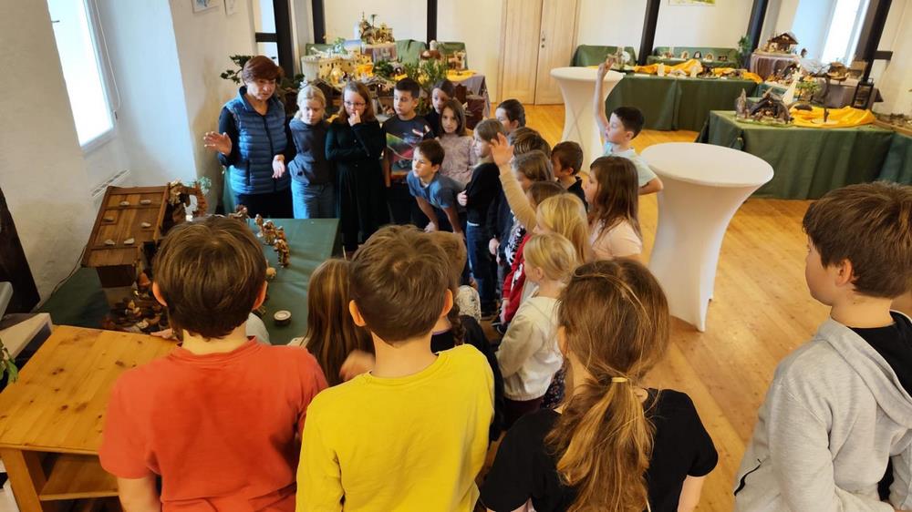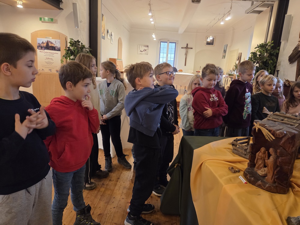 Die Kinder der Volksschule Maria Saal besuchten die Krippenausstellung im Haus der Begegnung in Maria Saal. Dabei bestaunten sie die in liebevoller Handarbeit hergestellten Weihnachtskrippen.